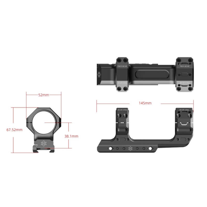 Jednodielna Cantilever montáž Vector Optics prináša vyššiu tuhosť než klasické samostatné krúžky a zároveň lepšie posunutie optiky dopredu pre ideálnu polohu oka, najmä pri použití LPVO puškohľadov. Vďaka konštrukcii z odolnej ocele zvládne aj silnejšie kalibre bez straty nástrelu. 4 skrutky na každej strane zabezpečujú rovnomerné upnutie tubusu a minimalizujú riziko poškodenia optiky. Montáž je určená pre štandardné RIS lišty a je vhodná pre airsoft, športovú streľbu aj ostré zbrane.