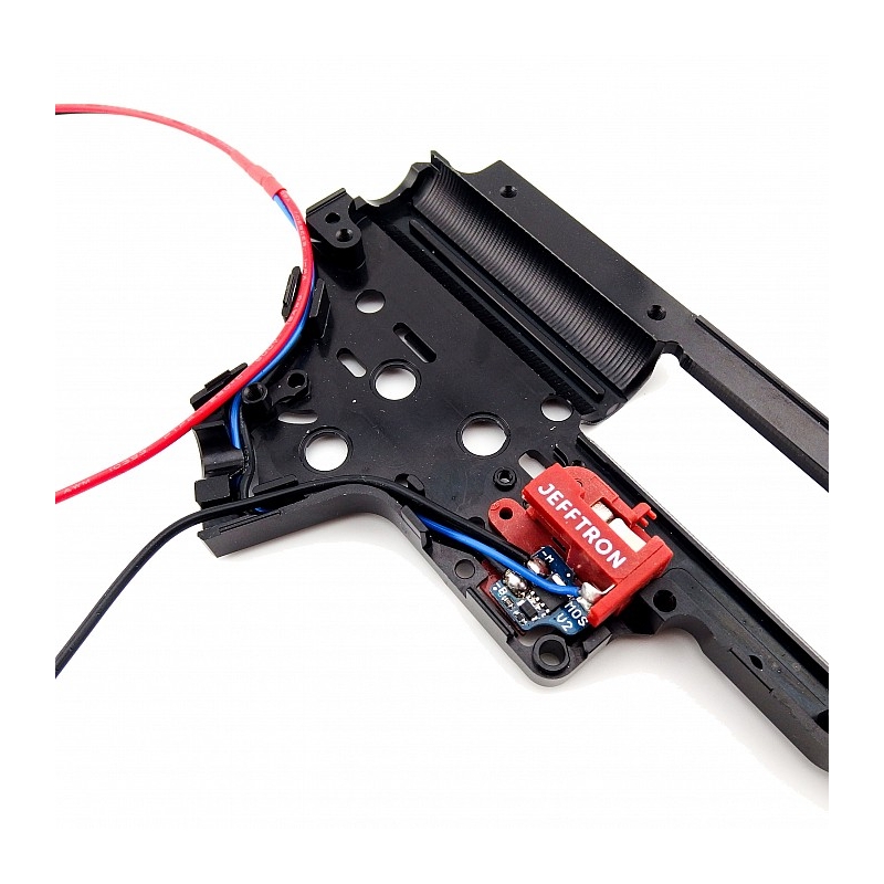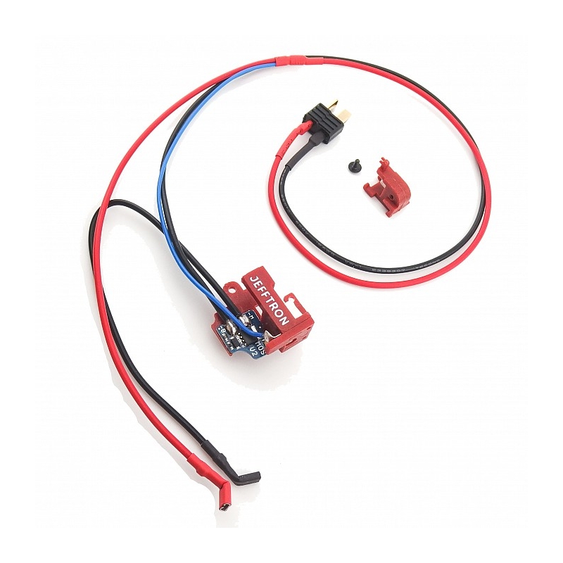 MOSFET V2 je profesionálne navrhnutý elektronický spínač bez aktívneho brzdenia, umiestnený priamo v mechaboxe. Nahrádza klasické mechanické spínanie prúdu cez spúšťové kontakty. Tým eliminuje opalovanie kontaktov, čím predlžuje ich životnosť a zároveň zvyšuje účinnosť elektrického obvodu zbrane. Zariadenie umožňuje dosiahnutie vyššej kadencie a dlhšej výdrže batérie v porovnaní s bežnou kabelážou. Ide o kompaktný modul priamo na doske spúšťových kontaktov, ktorý je vhodný najmä pre skúsených technikov a servisy, pretože jeho inštalácia vyžaduje pokročilé znalosti AEG zbraní.