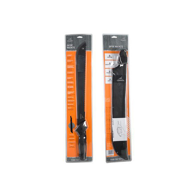 Připraveni na pořádnou zábavu? Tahle mačeta, jménem Gerber Gator, vás dostane všude. Je před Vámi překážka? Řežete! Nejde přeřízout? Pusťte se do ní pilou. Pila na neostré straně se táhne přes celou čepel, takže se s ní velice dobře pracuje.