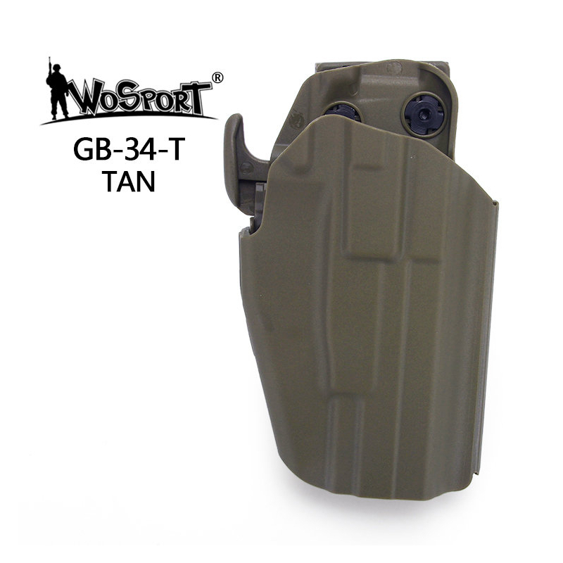 Hľadáte univerzálne opaskové puzdro, ktoré zvládne viacero modelov pištolí veľkosti Compact? Chcete rýchle tasenie zbrane bez straty bezpečného istenia? Potrebujete ľahké, ale odolné puzdro vhodné na každodenné nosenie aj airsoft? Potom je WoSporT GB-34 správna voľba. Je vyrobené z odolného nylonu, ktorý zabezpečuje spoľahlivú ochranu a dlhú životnosť puzdra (holstra). Puzdro je navrhnuté s dôrazom na bezpečné nosenie zbrane a rýchle tasenie. Jeho unikátny dizajn využíva palcovú poistku v GLS štýle, ktorá udrží vašu pištoľ pevne v puzdre, a nastaviteľnú skrutku pre svor rôznych modelov pištolí (pozri prehľad kompatibility nižšie). Opasková spona je jednoducho nastaviteľná pre opasky rôznej šírky. Opaskovú platformu je možné jednoducho vymeniť za iné montážne platformy (pozri príslušenstvo).