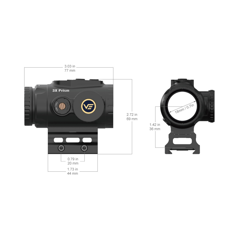 Prizmatický zameriavač PARAGON 3x18 MICRO Prism Scope od Vector Optics v prevedení čierna.