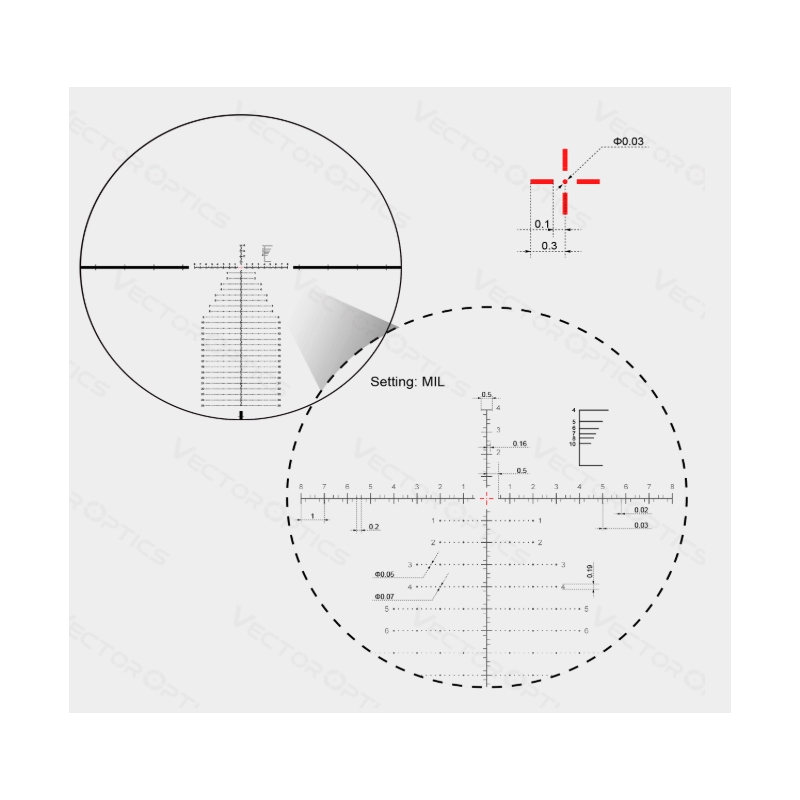 CONTINENTAL X6 5-30×56 od Vector Optics je navrhnutý pre presnú streľbu na dlhé vzdialenosti, kde záleží na každom detaile. Kombinácia 56 mm objektívu a 34 mm mono-tubusu poskytuje široké zorné pole a veľký rozsah výškových aj stranových korekcií. Srdcom optiky je nemecké sklo Schott HT s úpravou VePRO FMC, ktoré zabezpečuje vysokú priepustnosť svetla a čistý obraz aj za horších podmienok. Zámerný kríž VEC-MBR v prvej fokálnej rovine (FFP) sa prispôsobuje zväčšeniu a umožňuje presné meranie aj kompenzáciu poklesu strely. Praktická funkcia Zero Stop umožňuje okamžitý návrat na nastrelenú nulu a zámok vežičiek chráni nastavenie proti nechcenému pootočeniu. Nechýba bočné nastavenie paralaxy od 10 yardov a 6 úrovní podsvietenia. Konštrukcia z 6061-T6 hliníka je vodoodolná IP67, plnená dusíkom proti zahmlievaniu a odolná voči spätnému rázu až 1000 G. Súčasťou balenia je nastavovacie koliesko paralaxy SCCON-SW2, ktoré poskytuje výrazne lepšiu kontrolu nad zaostrením na ľubovoľnú vzdialenosť.