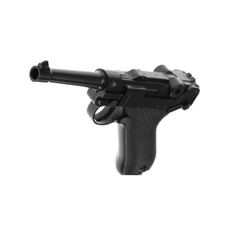 Skutočná pištoľ P08 Parabellum, známa aj ako Luger, bola vyvinutá v Nemecku na prelome 19. a 20. storočia a stala sa ikonickou zbraňou nemeckej armády počas prvej aj druhej svetovej vojny. Vďaka svojmu charakteristickému dizajnu a presnosti si ju vojaci obľúbili – a po vojne sa často stala trofejou spojeneckých vojakov, ktorí si ju odnášali domov ako cennú pamiatku. Išlo o jednu z prvých masovo rozšírených samonabíjacích pištolí v histórii. Vyrábala sa od roku 1900 až do 40. rokov 20. storočia a medzi jej výrobcov patrili najmä Deutsche Waffen und Munitionsfabriken (DWM) a Mauser. Pištoľ Luger P08 sa stala legendou nielen vďaka svojej histórii, ale aj unikátnemu spúšťovému systému a typickému lomenému tvaru záveru, ktorý bol na svoju dobu technicky pokrokový a dodnes ostáva ikonický.