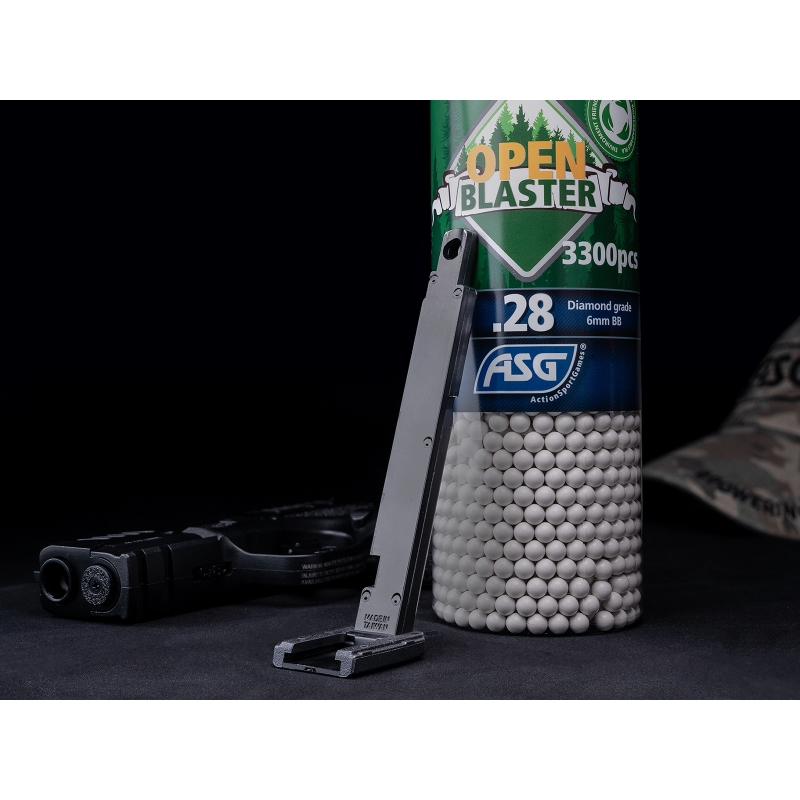 Rýchlonabíjačka (plnička) pre tlačné zásobníky od ASG v tmavo priehľadnom prevedení. Kapacita 100 guličiek (BBs). Možno ju prenášať v sumke pre dvojradové pištoľové zásobníky (9mm Glock, Hi-Capa, CZ-75 a pod.). Vyrobená z tvrdeného plastu pre vyššiu odolnosť. Horné veko umožňuje jednoduché plnenie guličkami.