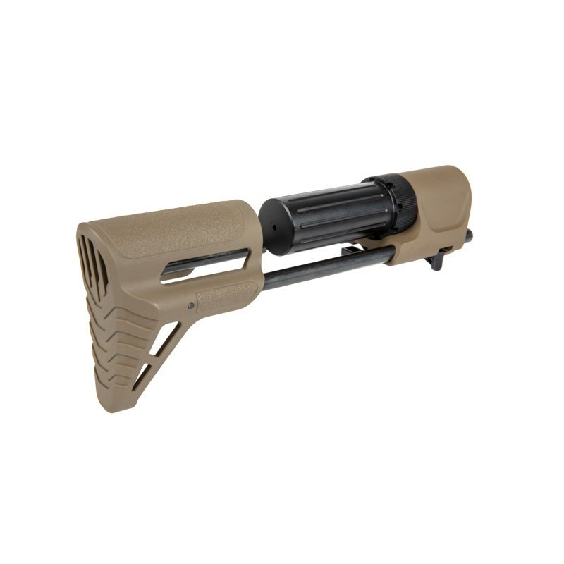 Pažba je vybavena dvojitým zámkem, který zabraňuje náhodnému vypadnutí pažby z těla. Do vyjímatelné falešné trubice se vejde LiPo baterie o rozměrech 15 x 11 x 115 mm.
