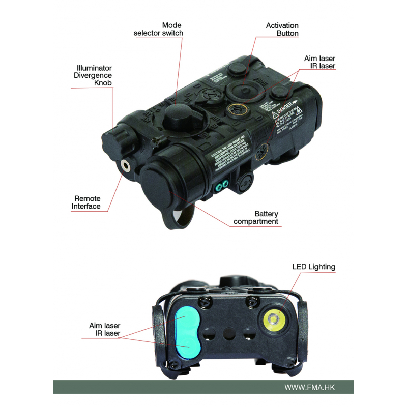 LAB PEQ-NGAL od FMA je nový taktický nastaviteľný laserový modul so svietidlom, vyrobený z polymeru vystuženého nylonovými vláknami, ktorý ponúka vysoko odolný a ultra-kompaktný dizajn. Modul je kompatibilný so všetkými typmi zbraní s RIS lištou, od krátkych až po dlhé útočné pušky.
