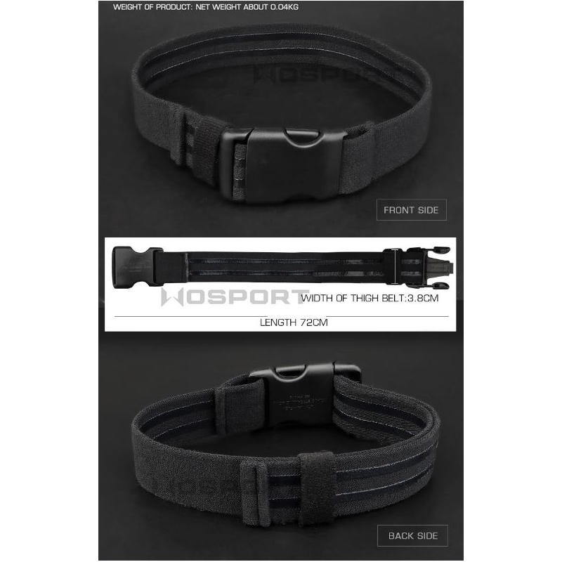Tactical elastic anti-slip thigh belt od značky WoSporT je navrhnutý na použitie pod pištoľové puzdrá na Low-Rise platforme alebo priamo na stehenných paneloch. Vďaka kombinácii pevného bavlneného popruhu a elastických protišmykových pásikov drží platformu pevne pri tele a obmedzuje jej pohyb pri behu, kľaku alebo zmene polohy. Nastaviteľná dĺžka umožňuje prispôsobenie rôznym postavám a typom puzdier. Nízka hmotnosť a plastová pracka z technického polyméru zaisťujú pohodlie aj pri dlhodobom nosení.