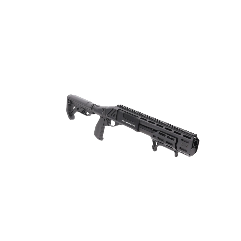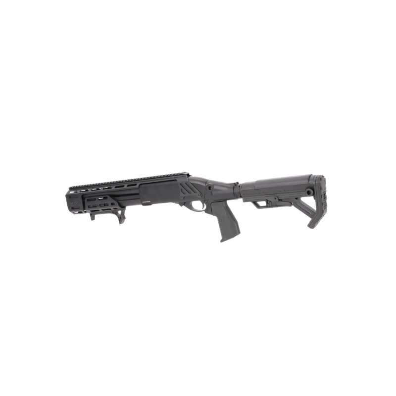 Hľadáš kompaktnú a ľahkú pump-action brokovnicu pre CQB? Chceš používať realistické náboje s kapacitou 30 BBs? Potrebuješ spoľahlivý plynový pohon a prepínač medzi 3 alebo 6 BBs na jeden výstrel? Potom je brokovnica Specna Arms SA-VGS1 VAPOR™ presne pre teba. Je navrhnutá ako univerzálna CQB brokovnica, ktorá kombinuje kovové komponenty s odolnými polymérovými časťami. O pohon sa stará plyn Green Gas uložený priamo v pažbe. Zbraň má zosilnenú trysku pre spoľahlivý chod a rovnomerné dávkovanie plynu. Pod okienkom pre náboje sa nachádza prepínač streľby, ktorým si zvolíš režim 3 alebo 6 BBs na výstrel. Samozrejmosťou je bezpečnostná poistka a tlačidlové uzamykanie zásuvky pre náboje. Brokovnica VAPOR™ je určená pre rýchle CQB akcie – ponúka rýchle prebíjanie, výbornú ovládateľnosť a spoľahlivý výkon. Model SA-VGS1 má kovové M-LOK predpažbie s prednou šikmou rukoväťou, M-LOK sloty na montáž svietidiel alebo laserov (PEQ, D-BALL a pod.) a dlhú RIS lištu pre montáž kolimátora. Výsuvná pažba typu M4 / AR15 s plniacim ventilom a ergonomická GBB rukoväť dotvárajú praktickú a modernú zbraň pre CQB prostredie.