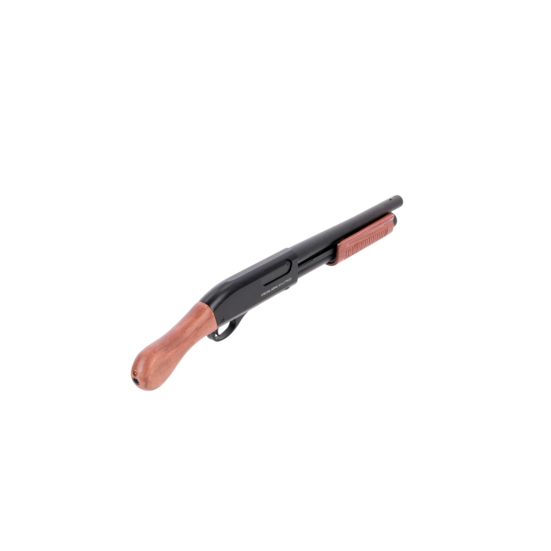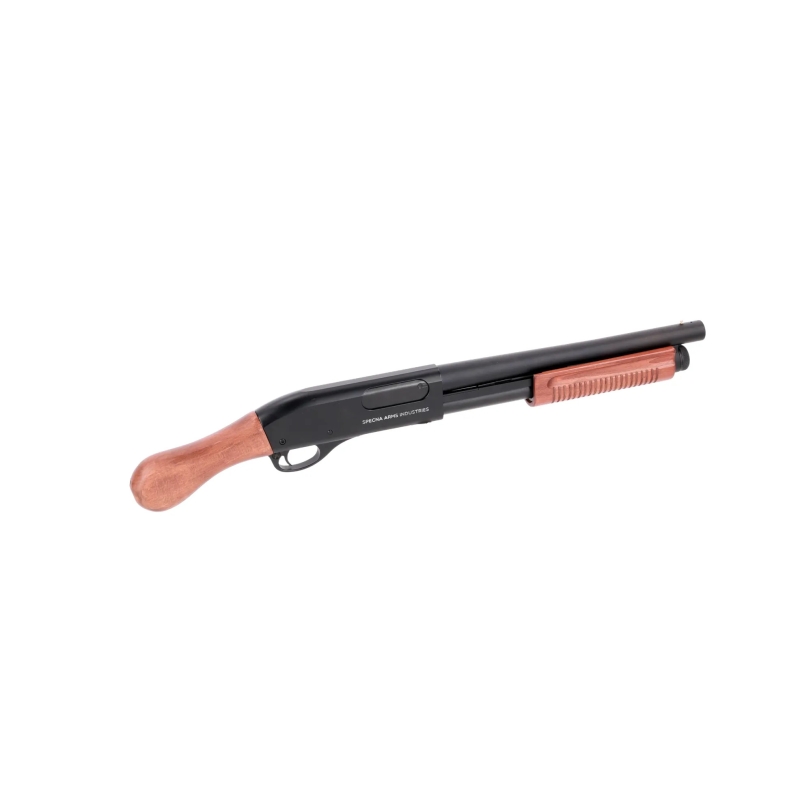 Airsoftová brokovnica VGS14 VAPOR™ Birdshead Grip od Specna Arms v čiernom prevedení s dreveným pažbením.