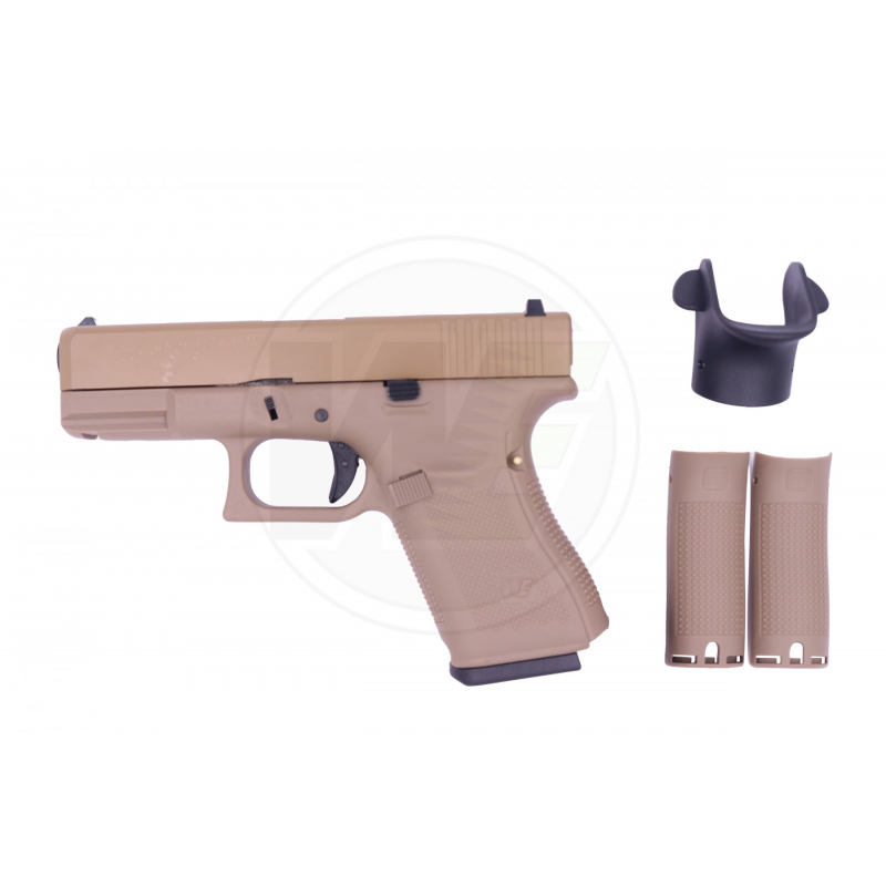 WE GBB plynová pištoľ Glock 19 Gen5 Secret v prevedení piesková.