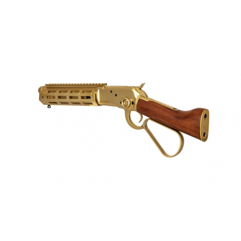 Winchester M1873 je plynová replika slávnej americkej pákovej pušky navrhnutej Johnom Browningom. Táto replika od A&K je vyrobená z vysoko kvalitných materiálov, vrátane celokovového krytu záveru, vonkajšej hlavne a nabíjacej rukoväte. Pažba bola starostlivo vyrobená z pravého lakovaného dreva, čo zbrani dodáva autentický vzhľad aj pocit pri manipulácii. Po každom výstrele je potrebné repliky znovu nabiť zatiahnutím za pákovú rukoväť, rovnako ako u originálnej ostrej pušky.
