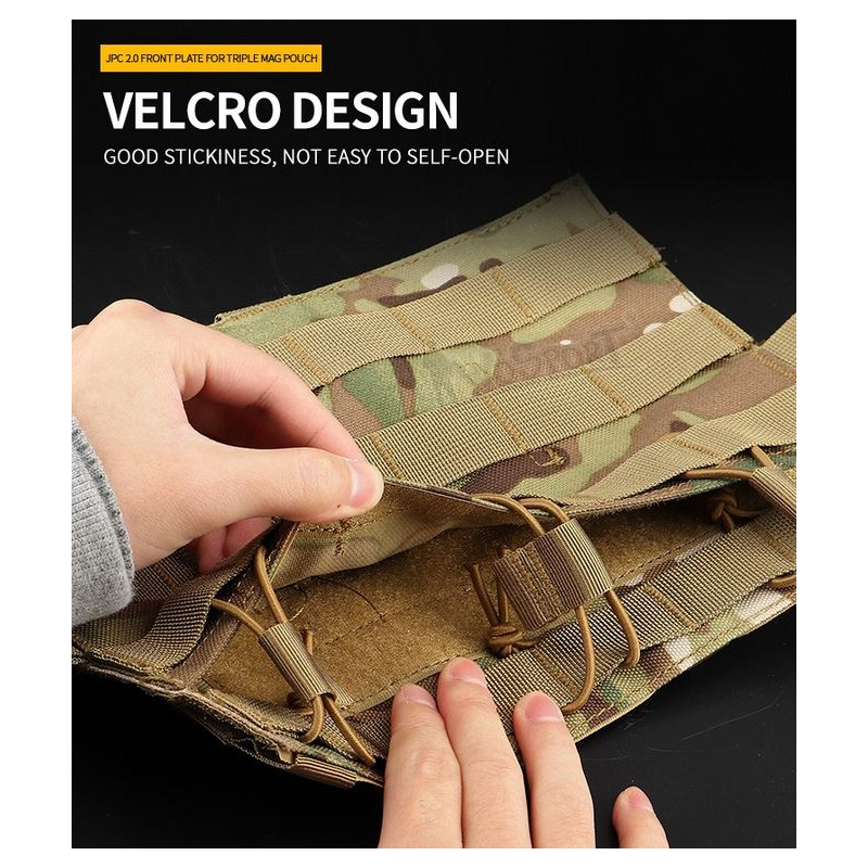 Predná zásobníková platforma pre vestu JPC, na ktorú sa zmestia tri zásobníky a oveľa viac vďaka väzbe Molle. Platforma je vyrobená z nylonu 1000D, ktorý je ľahký a odolný. Vo vnútri vreciek na zásobníky nájdeme uzávery na suchý zips a zásobníky drží na mieste bungee šnúra, vďaka ktorej ich ľahko nestratíte ani pri tých najnáročnejších hrách.
