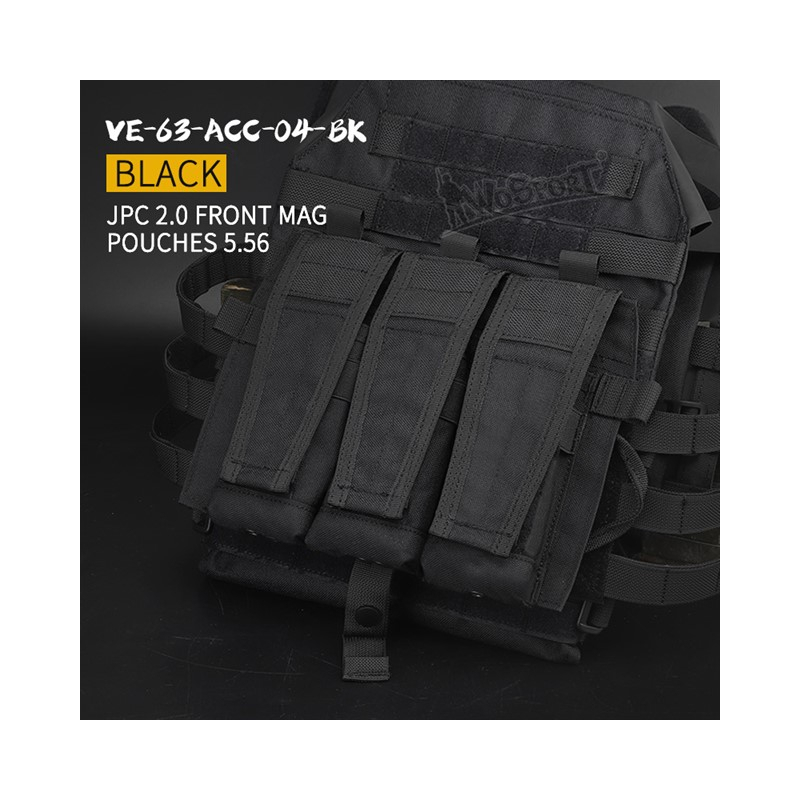 Predná platforma Wosport s tromi puzdrami na zásobníky 5.56 pre vestu JPC. Zadná strana je pokrytá panelom so suchým zipsom, ktorý umožňuje jednoduché pripevnenie platformy k veste. K dispozícii vo viacerých farbách.