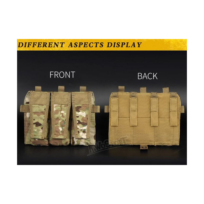 Predná zásobníková platforma pre vestu JPC, ktorá pojme tri zásobníky 5.56. Platforma je vyrobená z nylonu 1000D, ktorý je ľahký a odolný. Zásobníky sú vo vnútri puzdier zaistené suchými zipsami, čo znamená, že ich len tak nestratíte ani počas najťažších hier.