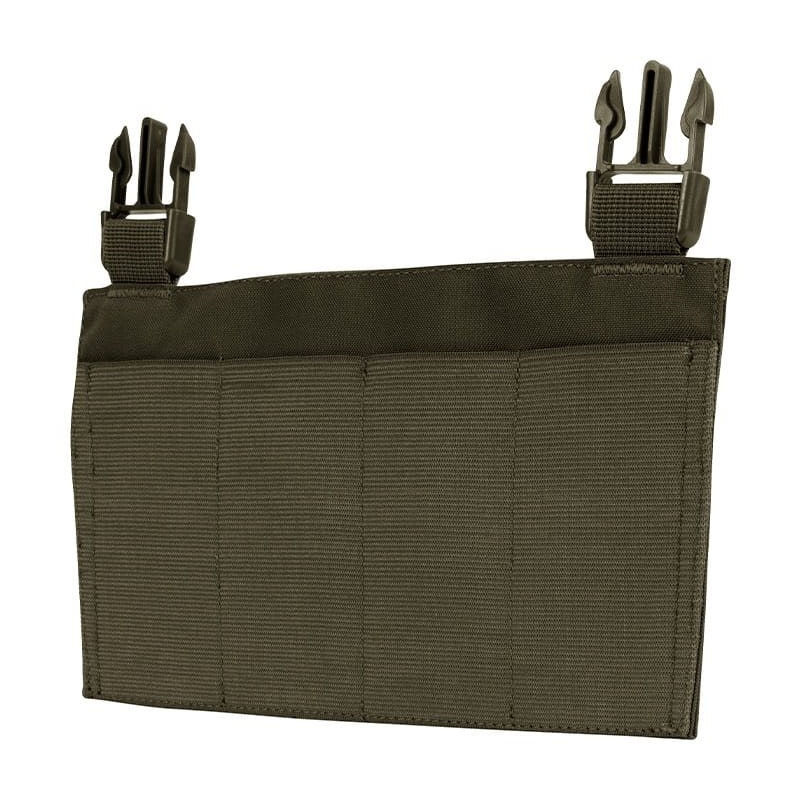 Modulárny predný panel typu Flap určený pre nosiče plátov Viper VX Buckle-Up – ideálny pre používateľov, ktorí potrebujú flexibilne prispôsobiť výstroj rôznym typom zbraní alebo úlohám. Panel má napevno prišité elastické sumky pre 4 zásobníky typovo vhodné pre samopaly ako MP5, CZ Scorpion EVO 3, ARP9, GP Stribog a iné. Jednoducho sa pripevňuje pomocou FASTEX praciek a VELCRO suchého zipsu a je kompatibilný aj s inými nosičmi plátov, ktoré majú zodpovedajúcu rozteč praciek. Vyrobený je z odolného 700D Polytech materiálu, ktorý bez problémov zvládne náročné podmienky aj intenzívne používanie.
