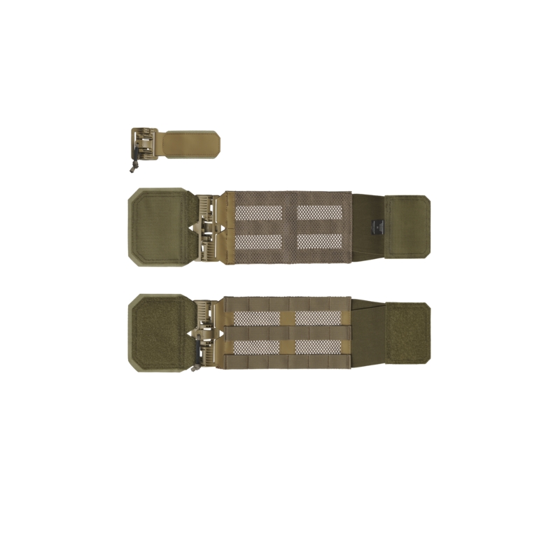 Hľadáte rýchly, spoľahlivý a pohodlný spôsob, ako spojiť predný a zadný diel svojho nosiča plátov? Chcete mať možnosť zhodiť nosič plátov jedným pohybom, napríklad po zásahu alebo páde do vody? Potrebujete riešenie, ktoré zjednoduší obliekanie vesty, zlepší ventiláciu a zároveň umožní montáž sumiek či ďalšieho vybavenia na boky? Potom siahnite po QD systéme GUARDIAN s Cummerbund panelmi od Helikon-Tex. Tento set obsahuje ľavý a pravý bočný panel s robustnými Due Emme QD prackami a tiež ramennú QD pracku na VELCRO uchytenie. Panely sú vyrobené zo štruktúrnej sieťoviny, ktorá výrazne zlepšuje ventiláciu aj pri plnom osadení výstrojou. Vonkajšia plocha umožňuje plnú kompatibilitu so MOLLE systémom, zatiaľ čo vnútorný skelet z materiálu Hypalon panel spevňuje a stabilizuje upevnené vybavenie. QD systém umožňuje rýchle zhodenie vesty v krízovej situácii a tiež jednoduchšie obliekanie bez nutnosti odlepovať prednú chlopňu. Set je určený pre nosiče plátov Helikon-Tex GUARDIAN a ďalšie modely s rovnakým typom VELCRO zapínania.
