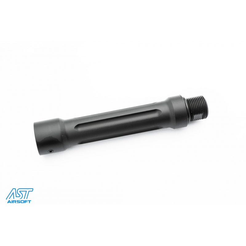 Predĺženie je vybavené vonkajším aj vnútorným 14-mm ľavotočivým závitom (CCW), čo umožňuje jednoduchú montáž na vonkajšiu hlaveň alebo na adaptéry vonkajšej hlavne pre GBB pušky GHK a VFC (adaptéry nájdete vo vhodnom príslušenstve). Súčasťou je tiež stavací šrób M3x4mm na pevné upevnenie.