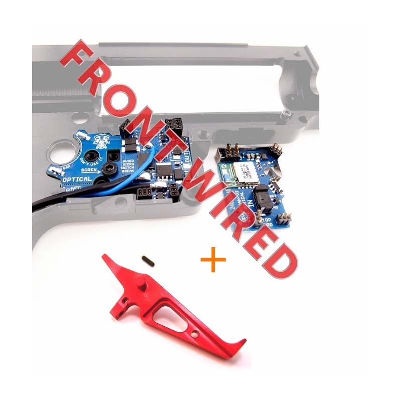 Leviathan V2 Optical je elektronická ETU jednotka s Bluetooth, určená na inštaláciu do mechaboxu V2 a V2.5 podľa TM štandardu. Vďaka optickým senzorom pre detekciu výstrelu a prepínača režimu streľby a extrémne krátkemu spínaču (iba 0,13 mm) umožňuje nastavenie realistického hair trigger módu. Systém Real Feel Trigger System (RFTS) so pružinou simuluje odpor reálnej spúšte a poskytuje reset po výstrele. Cez mobilnú aplikáciu JeffTron môžete v reálnom čase nastavovať režimy streľby, kadenciu, aktívnu brzdu, prednatiahnutie piestu, virtuálny zásobník a množstvo ďalších funkcií. Vstupný aj výstupný port podporuje pripojenie externých doplnkov ako svietidlá, elektrické zásobníky alebo senzor prázdneho zásobníka. Jednotka je chránená konformným lakom. Je kompatibilná s vysokokadečnými zostavami vrátane DSG kolies a je plne pripravená na Brushless motory ako Warhead. Všetky zmeny v aplikácii sa okamžite ukladajú do pamäte jednotky. K jednotke navyše dostanete aj CNC hliníkovú spúšť od Retro Arms s nastavovacím skrutkou a štýlovým dizajnom.