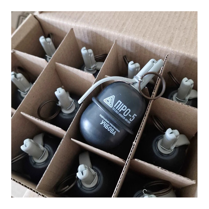 Airsoftový ručný granát Pyro-5P od PYROSOFT v čiernom prevedení.