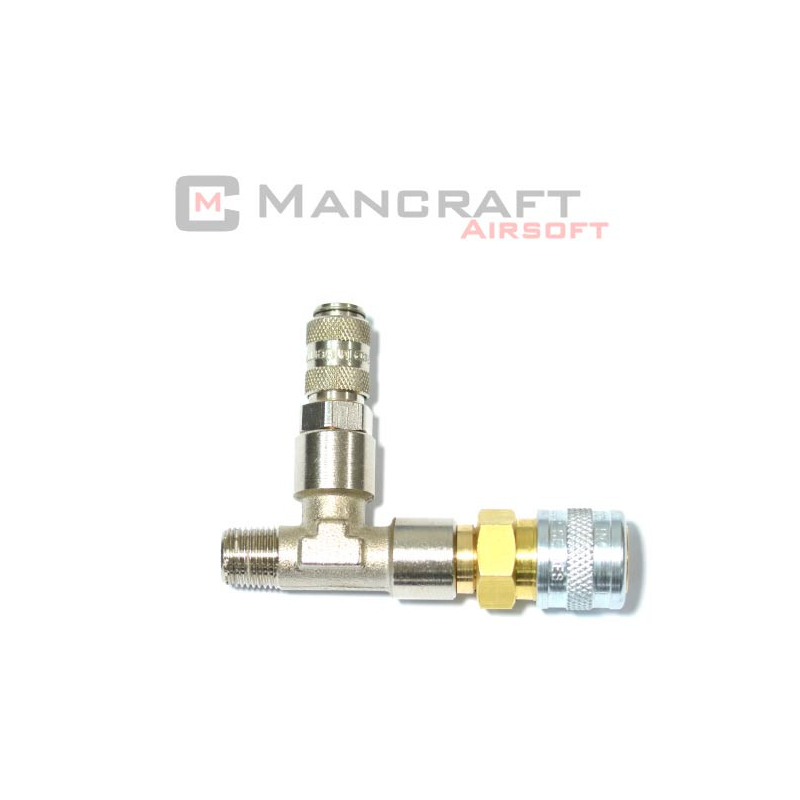 Potrebujete pripojiť k svojmu HPA regulátoru viac hadíc naraz? Tento 3-cestný adaptér od MANCRAFT umožňuje súčasné pripojenie hadice s konektorom QD US (napr. pre primárnu zbraň) a hadice s konektorom MICRO QD 4 mm (napr. pre pištoľ). Všetky konektory sú vo verzii samica, čo umožňuje rýchle zapojenie aj odpojenie bez použitia náradia. Adaptér je kompatibilný so závitom G1/8 (vnútorný), ktorý využíva väčšina HPA regulátorov. Celokovová konštrukcia zaručuje dlhú životnosť a tesnosť systému bez únikov. Ideálna voľba pre hráčov, ktorí používajú viac zbraní napájaných z jedného regulátora. Viac informácií o HPA systémoch nájdete v našom článku Ako si poskladať HPA zostavu.
