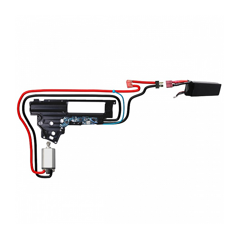 Procesorová jednotka Leviathan V3 Optical od JeffTron s predným vývodom kabeláže (predpažbie / nad mechabox). Pre mechabox V3 (séria AK, G36, CZ805 Bren a ďalšie zbrane). Bluetooth programovanie cez aplikáciu JeffTron (iOS / Android). Hair trigger mód. Pripravená aj pre bezkefové motory. Systém RFTS – odpor ako pri skutočnej zbrani.