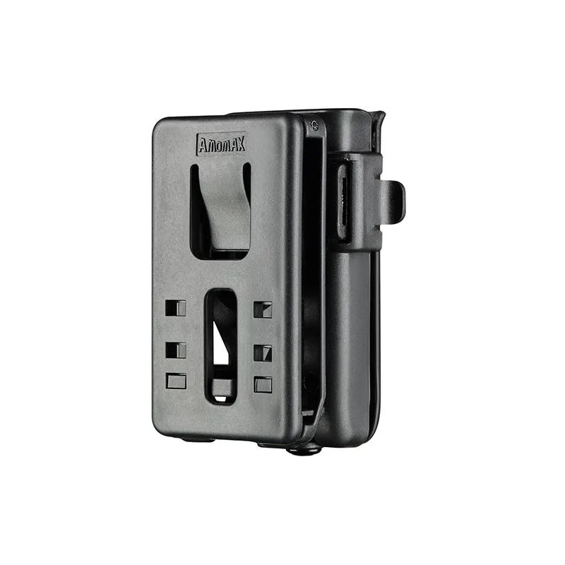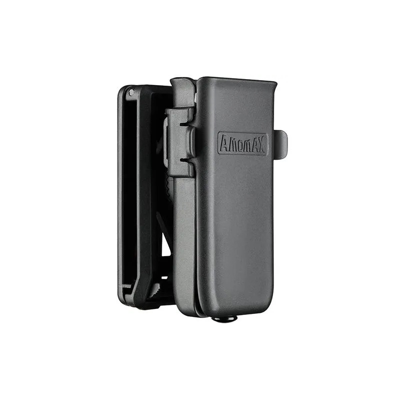 Univerzálne puzdro na 1 pištoľový zásobník od Amomax je vyrobené z odolného high-tech polyméru a umožňuje nastaviť úchop pomocou bočných zámkov na puzdre. Vďaka tomu si môžete prispôsobiť sevrenie zásobníka na mieru konkrétnemu modelu a požadovanej sile úchopu. Okrem toho je puzdro vybavené 360° otočným systémom, ktorý umožňuje nastavenie uhla nosenia podľa individuálnych preferencií. Otvorená konštrukcia zaručuje rýchle a intuitívne prebíjanie.