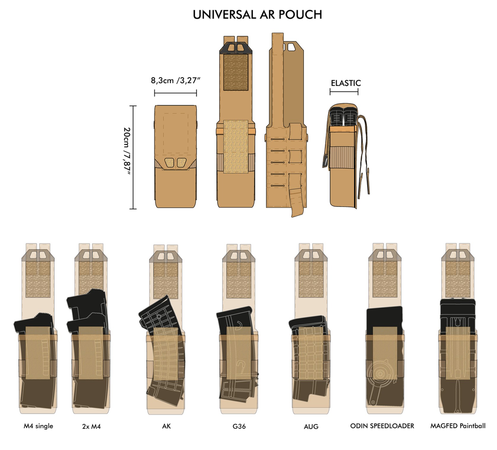 Hľadáte sumku, ktorá ochráni vaše zásobníky pred špinou a stratou? Potrebujete jednu MOLLE sumku kompatibilnú s viacerými typmi zásobníkov — M4, AK, G36, AUG alebo dokonca plničkou ODIN či MAGFED paintball zásobníkom? Potom je pre vás Novritsch univerzálna sumka tou správnou voľbou. Táto krytá sumka s chlopňou na suchý zips spája maximálnu ochranu pred nečistotami s pevným držaním zásobníka vďaka vnútornej elastickej gume. Robustná konštrukcia z 1000D nylonu a precízne spracovanie zaručujú dlhú životnosť. Či už nosíte dva M4 zásobníky, jeden AK/G36/AUG, alebo do nej vložíte plničku ODIN (alebo kópiu WoSporT Lever), všetko zostane pevne na svojom mieste bez rizika vypadnutia.