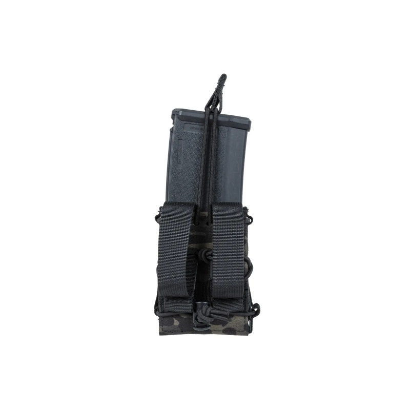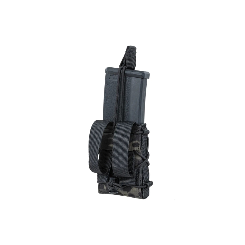 Hľadáte spoľahlivú a univerzálnu MOLLE sumku pre M4 alebo AK zásobníky? Potrebujete, aby zásobníky držali v sumke pevne a zároveň boli rýchlo dostupné? Táto elastická sumka od SATAC je presne to, čo hľadáte. Sumka na puškový zásobník AR15 (STANAG aj PMAG) alebo AK pojme jeden zásobník kalibru 5.56 až 7.62 a je kompatibilná aj s airsoftovými zásobníkmi. Vďaka dizajnu s Laser-cut MOLLE väzbou ju môžete vrstviť na ďalšie sumky, čo je ideálne pre efektívne usporiadanie výstroja. Nastaviteľné gumové lanko po bokoch zabezpečuje pevný svor zásobníka. Sumka je vyrobená z odolného materiálu CORUND 500D, takže bez problémov zvládne aj drsné podmienky v teréne.