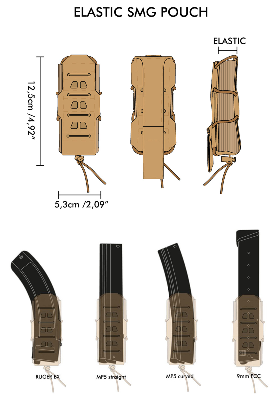 Hľadáte spoľahlivú a univerzálnu sumku pre rôzne SMG / PDW / PCC zásobníky? Potrebujete, aby zásobníky držali pevne a zároveň boli rýchlo dostupné? Táto elastická sumka od Novritsch je presne to, čo hľadáte. Perfektne pasuje na SSR9 a ARP9 zásobníky, no je tiež kompatibilná s MP5, MP7, GP STRIBOG a ďalšími. Vďaka nastaviteľnému svoru a protišmykovému vnútornému povrchu zásobníky pri pohybe nevypadávajú, ale pri prebíjaní sú okamžite po ruke. Laser-Cut MOLLE väzba umožňuje pripevniť ďalšie sumky na prednú stranu, takže jednoducho rozšírite svoju výbavu bez zbytočného zväčšovania profilu.