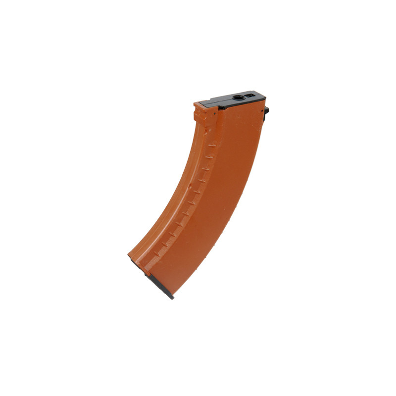 Tlačový zásobník AK-74 Bakelit od E&L v prevedení hnedá. Kapacita 120 BBs. Odolná polymérová konštrukcia s realistickým bakelitovým vzhľadom. Spoľahlivé podávanie aj pri vysokej kadencii a použití ťažších BBs. Spevnené telo zásobníka pre dlhú životnosť a odolnosť voči nárazom.
