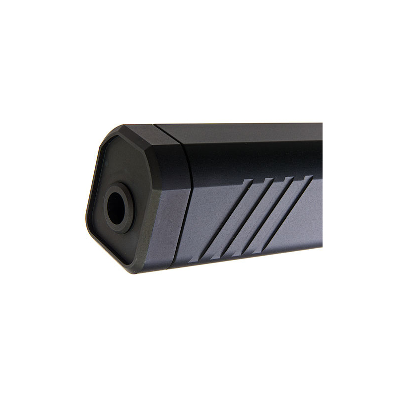 Tento robustný tlmič od Angry Gun je špeciálne navrhnutý pre model Krytac Kriss Vector (AEG a GBB), pričom dodáva zbrani nielen atraktívny vzhľad, ale aj vynikajúci tlmiaci účinok. Tlmič je vyrobený z leteckého hliníka 6061 s odolnou eloxovanou povrchovou úpravou, čo zaručuje dlhú životnosť a odolnosť voči opotrebeniu. Hliníkové prepážky vnútri tlmiča sú navrhnuté tak, aby maximalizovali účinnosť tlmenia.