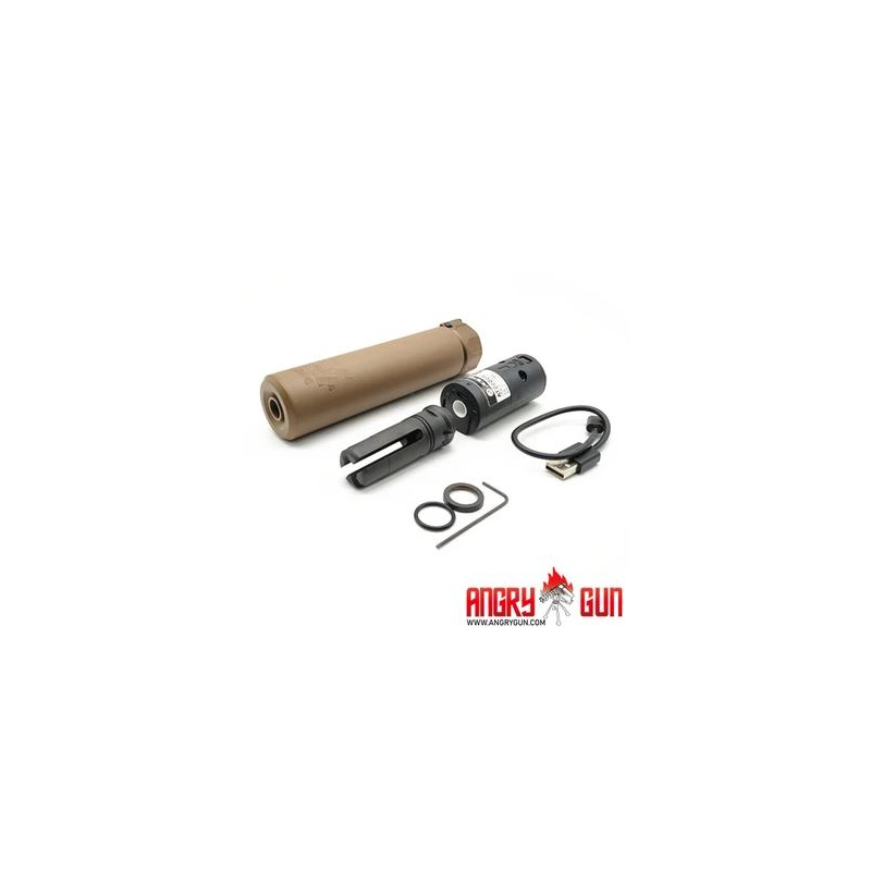 Telo tlmiča je vyrobené z odolného hliníka 6061 s realistickým hlbokým razením a povrchovou úpravou, zatiaľ čo malé časti zamykacieho mechanizmu sú z ocele pre zvýšenie odolnosti. Súčasťou balenia je aj tlmič výšľahu (flash hider) SOCOM 4 s QPQ povrchovou úpravou. Flash hider sa inštaluje na zbraň pomocou 14mm ľavotočivého závitu (CCW). Následne sa naň upevňuje aj samotný tlmič hluku, a to jednoducho pomocou rýchlo-upínacieho systému (QD). Stačí nasadiť tlmič do vodiacich drážok a následne otočiť základňou tlmiča. Tento tlmič kombinuje realistický dizajn s vysokou funkčnosťou.