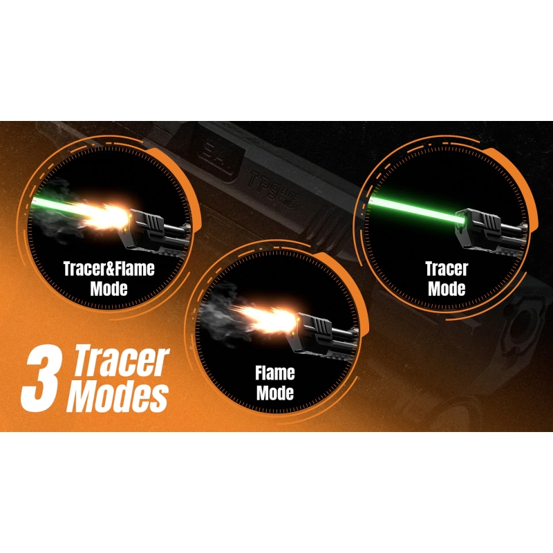 AceTech nasvetľovací kompenzátor QUADRA Tracer Unit pre airsoftové pištole kombinuje nasvetľovanie Tracer BBs a realistickú imitáciu výšľahu plameňa. Kompaktné telo v štýle kompenzátora perfektne sedí na pištole a neobmedzuje použitie puzdier. Vďaka 3 režimom, pohybovej aktivácii a USB-C nabíjaniu ide o ideálny upgrade pre každú pistolovú platformu.