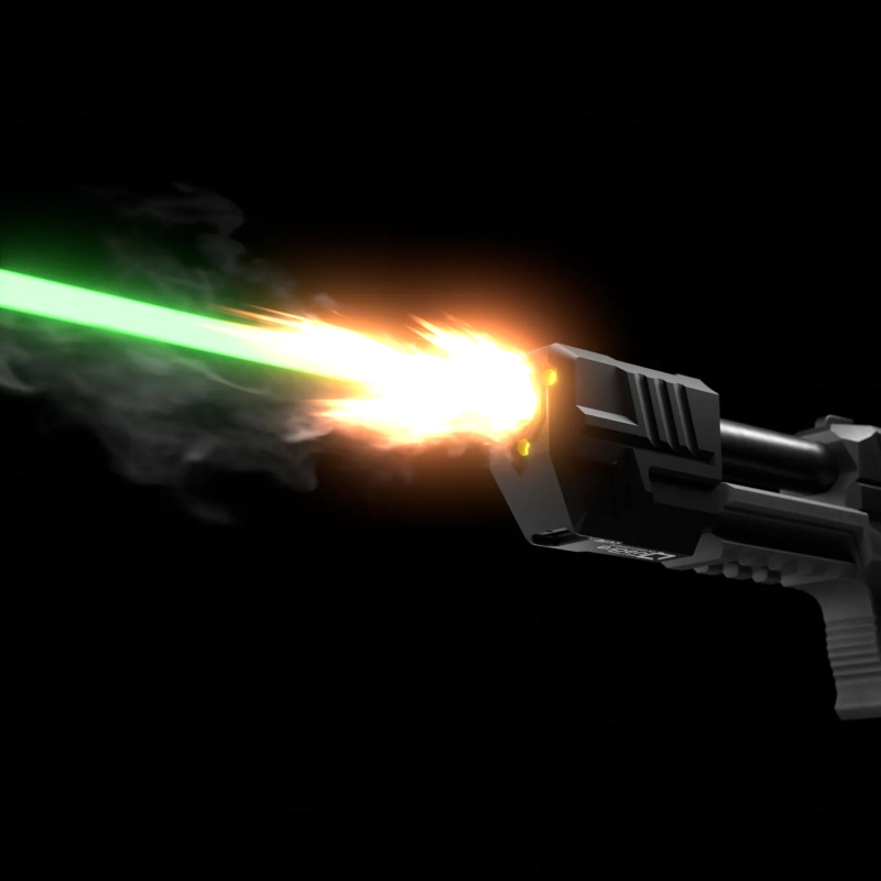 Ukážka efektu nasvetľovania tracer BBs a realistického výšľahu plameňa pri streľbe.