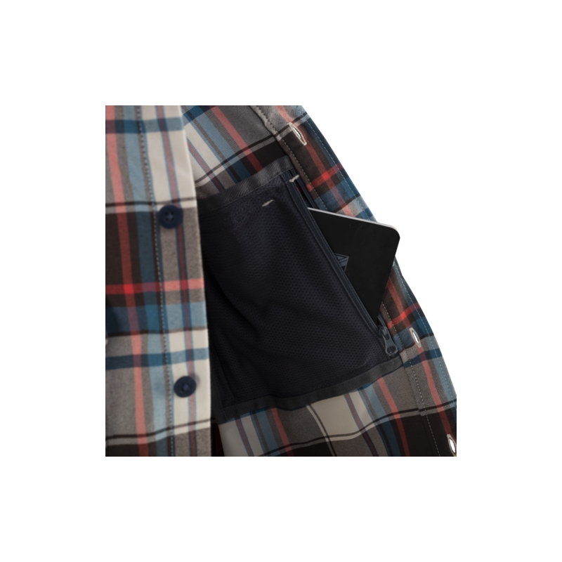 Košeľa sa zapína pomocou odolných plastových gombíkov. Na hrudi nájdete dvojicu hlbokých vreciek uzatváraných pomocou chlopne s gombíkom. Tieto vrecká navyše disponujú malým priechodom slúžiacim na zavesenie okuliarov.