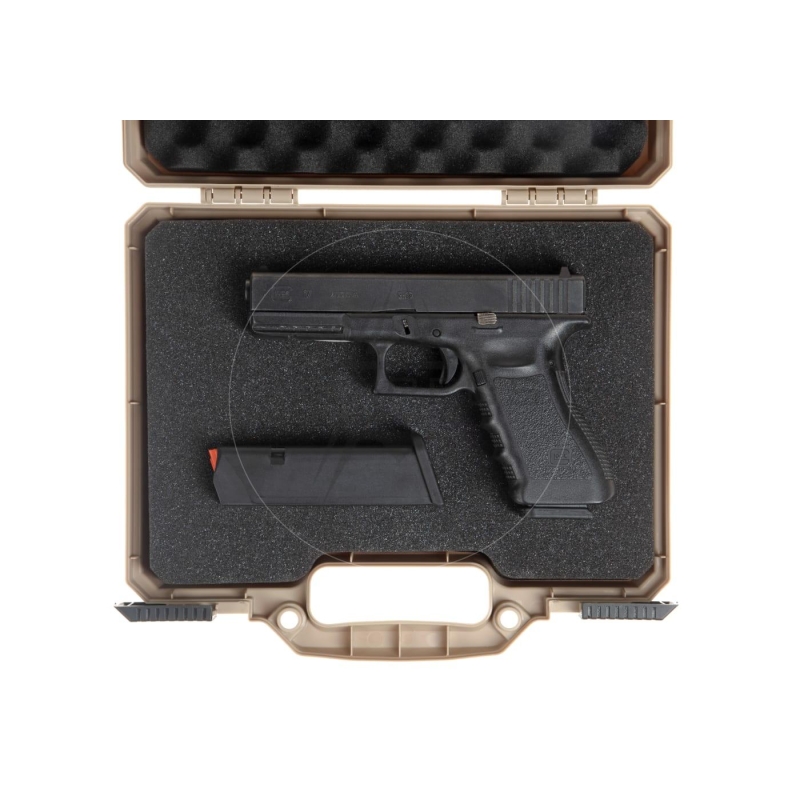 Transportný kufor na pištoľ 31 x 27 x 7,5 cm od Nimrod Tactical v prevedení Dark Earth.