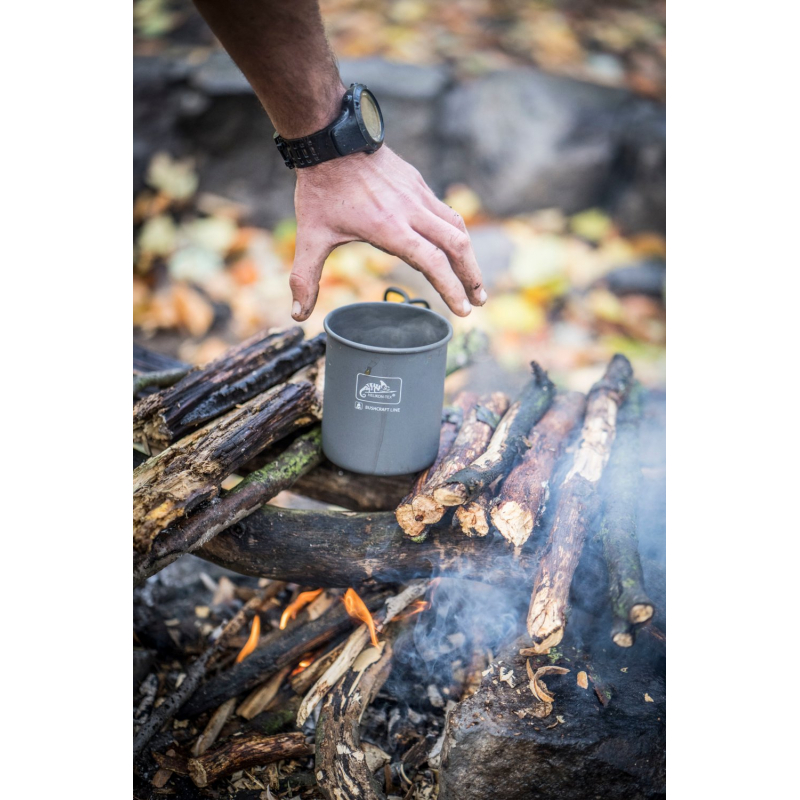 Hrnček CAMP od Helikon-Tex je vyrobený z eloxovaného hliníka, čo mu dodáva pevnosť a odolnosť aj v náročných podmienkach. S objemom 0,85 litra je ideálny na prípravu nápojov či jedál v prírode. Hrnček je vhodný na použitie na plynovom horáku aj na otvorenom ohni, čo z neho robí univerzálny nástroj pre outdoorových nadšencov. Veko pomáha udržať teplotu obsahu a skladacie izolované rukoväte zaisťujú pohodlnú manipuláciu bez rizika popálenia. Vďaka svojmu rozmeru a vnútornému priemeru je možné do hrnčeka vložiť litrovú PET fľašu pre jednoduchší transport. Hrnček je dodaný so sieťovým vrecúškom na jednoduché uskladnenie a prenos.
