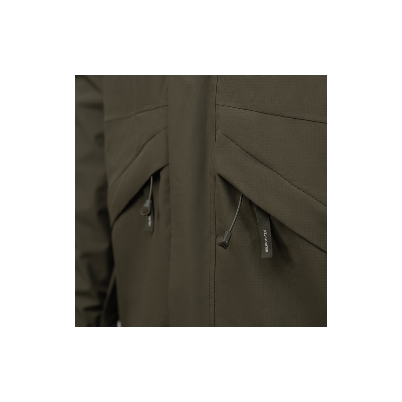 Helikon-Tex CHINOOK bunda v tmavozelenom prevedení je ľahká nepremokavá vrstva do dažďa, vetra a chladného počasia od −5 do 10 °C. Vďaka membráne 2.5L s vodným stĺpcom 20 000 mm a priedušnosťou 20 000 g/m²/24 h spoľahlivo chráni pred nepriazňou počasia a zároveň odvádza prebytočné teplo pri pohybe.