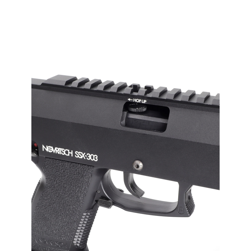 Vyrobená s trochu širším M4 závitom, aby sa sama od seba neuvolňovala po inštalácii. Dodatočne bola aplikovaná kapka lepidla na závit pre ešte stabilnejšie upevnenie. Skrutka je vyrobená z anodizovaného hliníka 6061, s laserom leptaným indikátorom smeru nastavenia hop-up. Jej rýchle bočné strany umožňujú jednoduché nastavenie hop-up, aj s rukavicami. Nízky profil zabezpečuje, že nebráni v mírení alebo používaní púzdra. Je to ideálny upgrade pre SSX303.