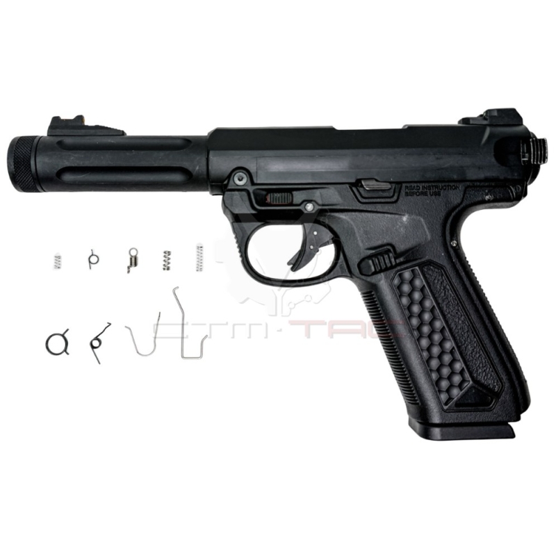 Jedna z najobľúbenejších plynových GBB pištolí v airsofte. AAP-01 Assassin GBB od Action Army v prevedení matná čierna. Hybrid medzi legendárnou Ruger (vzhľad) a Glock (zásobníky TM / WE G-series). Strieľa v režime semi aj full-auto s brutálnou kadenciou. Silný blowback a ľahké polymérové telo. Nekonečné možnosti upgradu – prestavba na SMG alebo DMR...