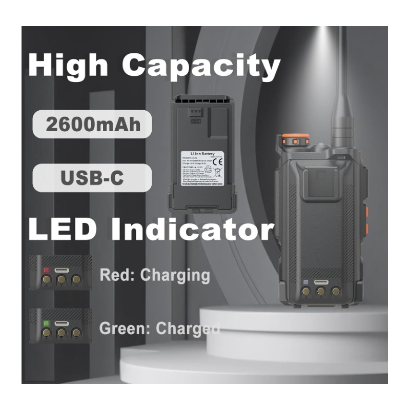 Nabíjateľná Li-Ion batéria pre rádiostanicu UV-K61 od Baofeng s kapacitou 2600 mAh a USB-C konektorom. Rýchle a pohodlné nabíjanie cez USB-C. Výkonná Li-Ion technológia pre spoľahlivú komunikáciu v teréne. Jednoduchá výmena nacvaknutím.
