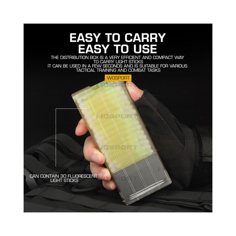 Neuvěřitelně efektivní a zároveň kompaktní vaianta klasického light sticku. Ideální na čištění místností či další aplikace. Jednodušše stačí otevřít balení a připevnit zásobník na opasek, dát do kapsy či do MOLLE nebo Kydexových pouzder. Tyčinka o velikosti 2” (5cm) vydává stejné množství světla jako klasická chemická světla velikosti 4” či 6" (bylo pozorováno s přístroji pro noční vidění).