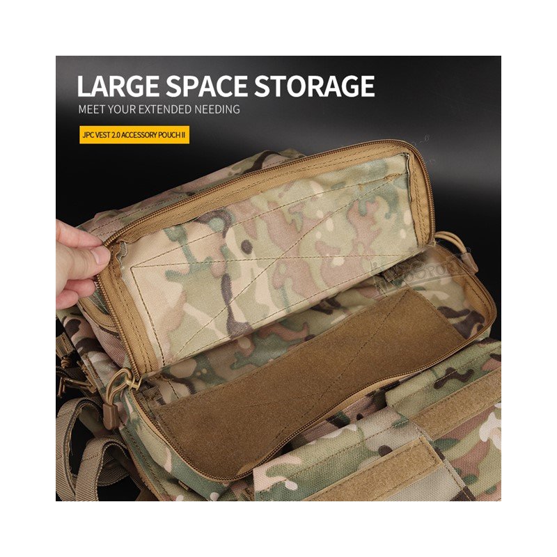 Multifunkčný batoh na vestu JPC od spoločnosti Wosport, do ktorého ľahko uložíte svoje vybavenie, aby ste mali pri hre všetko so sebou. Batoh je vyrobený z odolného nylonu 1000D a má veľa úložného priestoru v mnohých vreckách. K dispozícii v niekoľkých farbách.