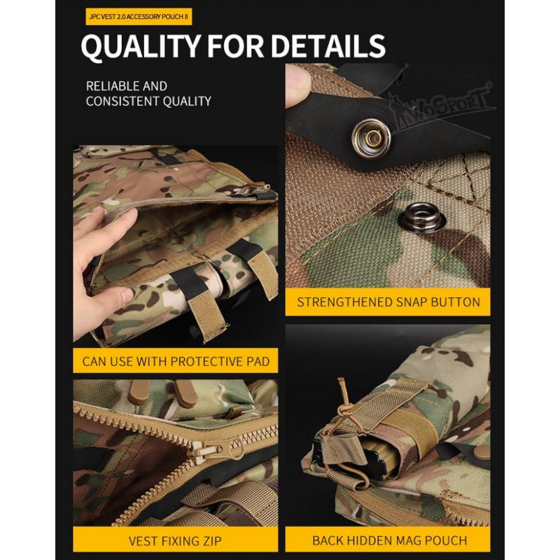 Priestorný multifunkčný batoh, ktorý je určený pre vestu typu JPC, ku ktorej sa pripevňuje pomocou zipsov na bokoch. Vrecká sú priestranné a zmestí sa do nich veľa vybavenia, ktoré možno rozdeliť do niekoľkých častí.